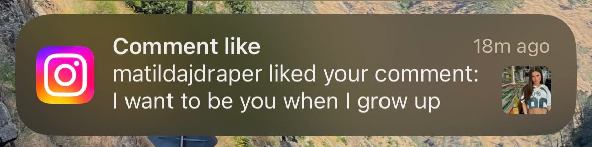 Matilda and Sean broke up—thank God! And now Matilda posts a lot of thirst traps. I commented on one of her posts and she liked it.